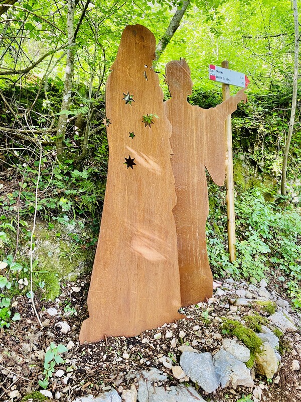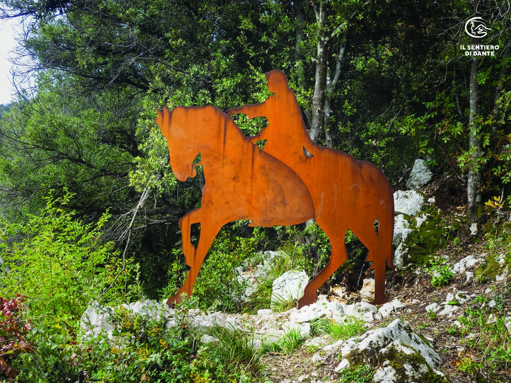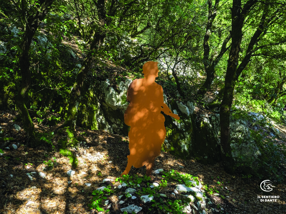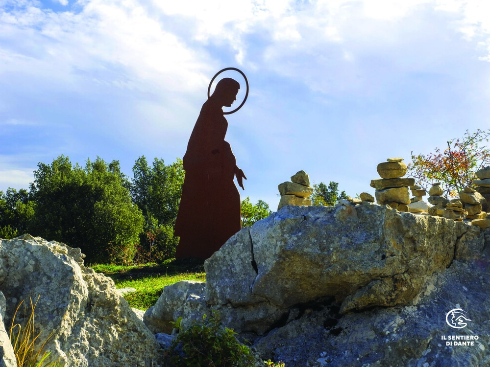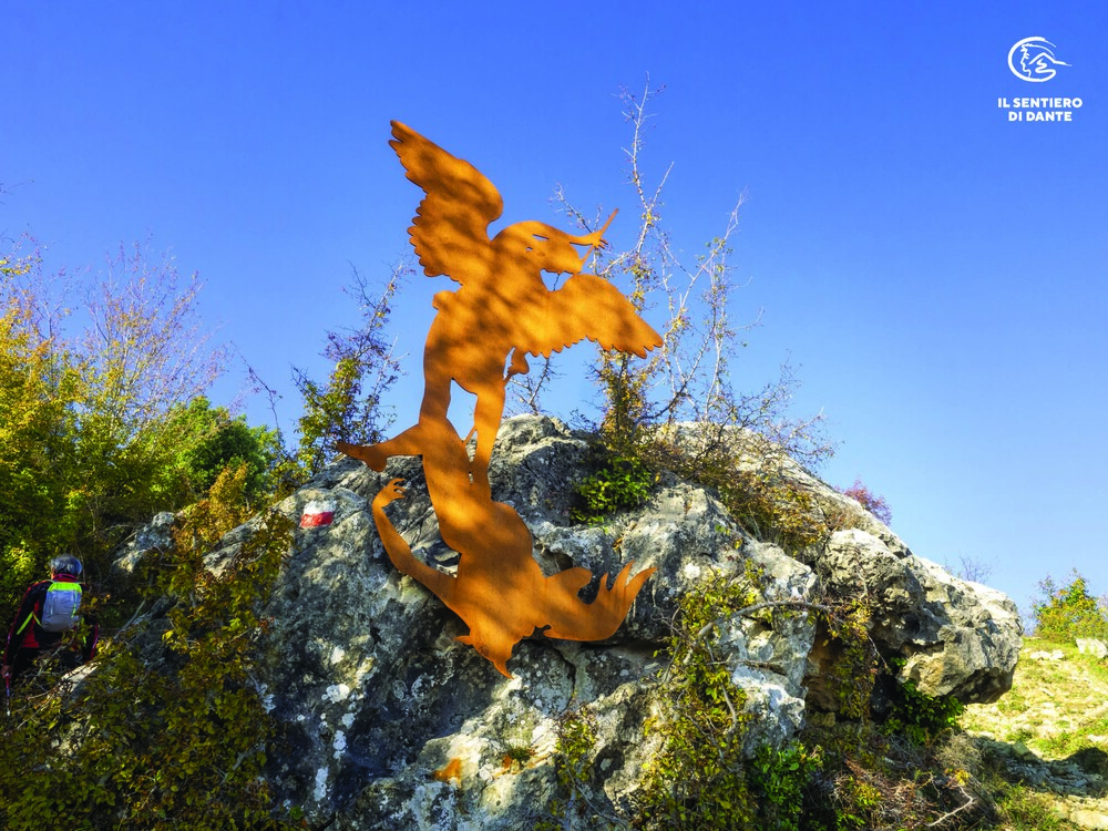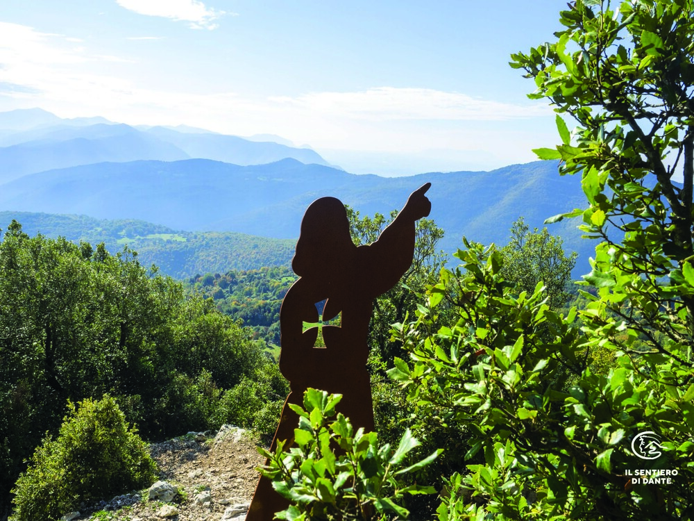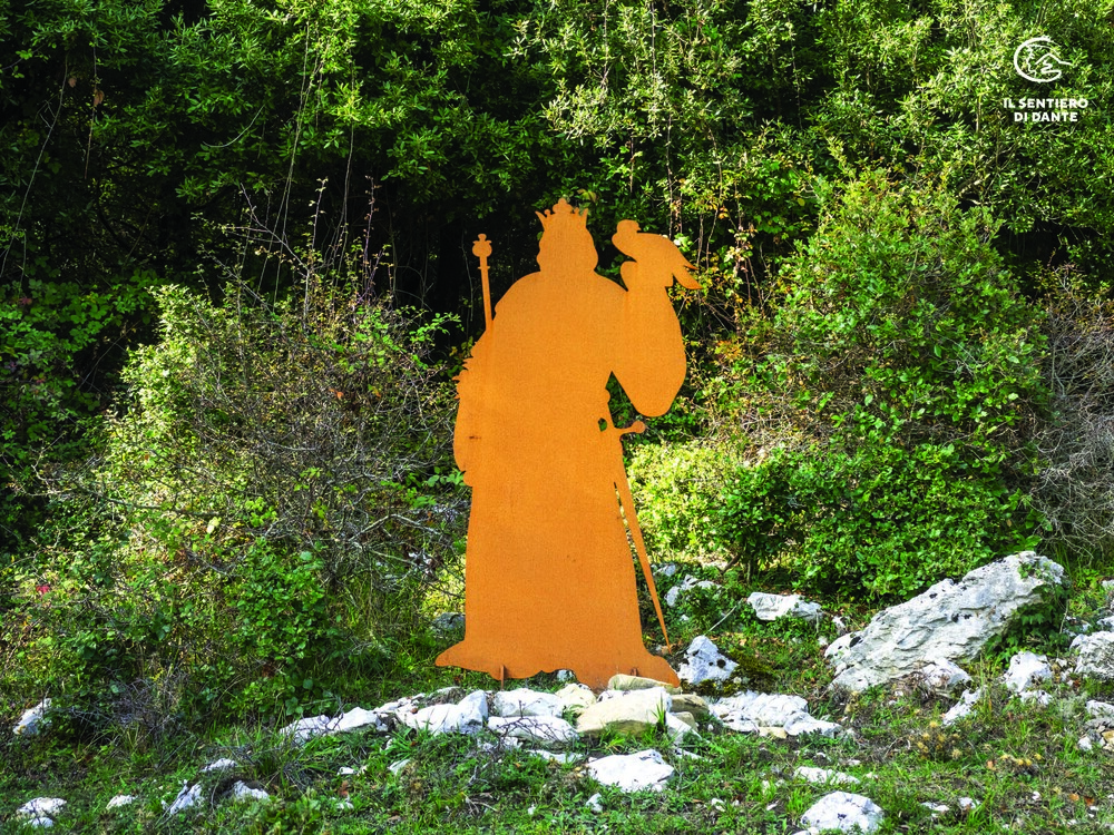 Da qui l’idea di trasformare metaforicamente Cacume nella montagna del Purgatorio – anche per la sua particolare cresta ad imbuto rovesciato - immaginando di camminare al fianco di Dante Alighieri nel suo viaggio, di attraversare i vari gironi e di incontrare i personaggi principali, fino al Paradiso che si concretizza con la cima del monte.