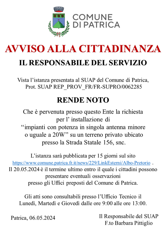 è pubblicata l'istanza del provvedimento specificato nella locandina: