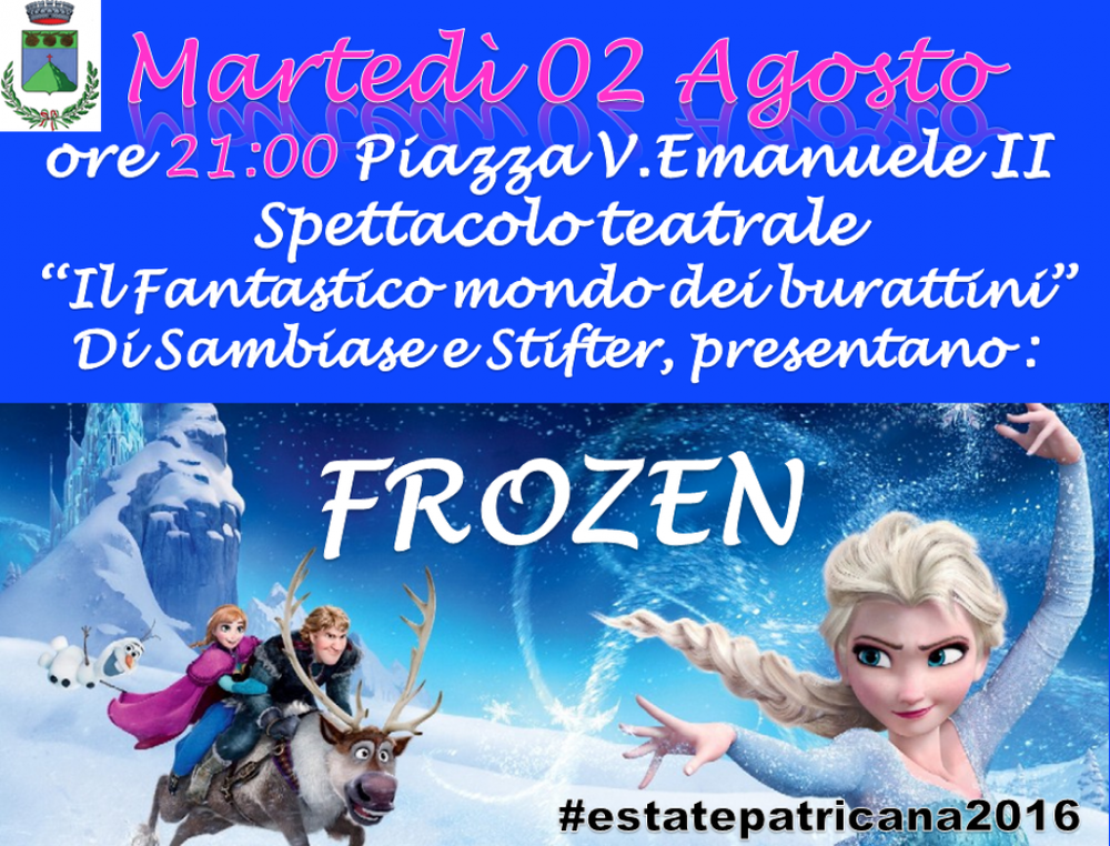 Martedì 2 agosto ore 21:00 "il fantastico mondo dei burattini": Frozen