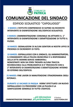 - Durante le vacanze di Pasqua verrà effettuato un nuovo sopralluogo e si procederà con la pulizia e la sanificazione di tutto l'edificio.