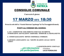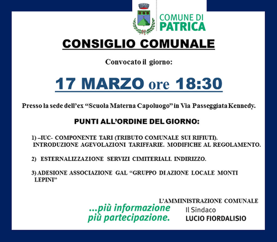 Convocato per il giorno 17 marzo 2016 ore 16.30, presso la sede dell’ex “Scuola Materna Capoluogo” in Via Passeggiata Kennedy.