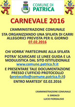 L'Amministrazione Comunale sta organizzando una sfilata di carri allegorici prevista per il giorno 07.02.2016.