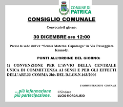 Convocato per il giorno 30 dicembre 2015 ore 12.00, presso la sede dell’ex “Scuola Materna Capoluogo” in Via Passeggiata Kennedy.