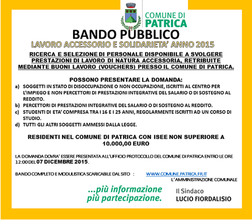 Ricerca e selezione di personale disponibile a svolgere prestazioni di lavoro di natura accessoria retribuite mediante buoni lavoro (vouchers) presso il Comune di Patrica.