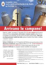 Dopo la “colata” avvenuta il 5 dicembre 2014, le sette campane per la nuova chiesa di Patrica sono pronte, arriveranno e saranno esposte, prima di essere installate sul campanile, per due giorni nel salone parrocchiale. Tutti i parrocchiani potranno vederle da vicino, prima di sentire il loro bello e solenne “concerto” (suono).