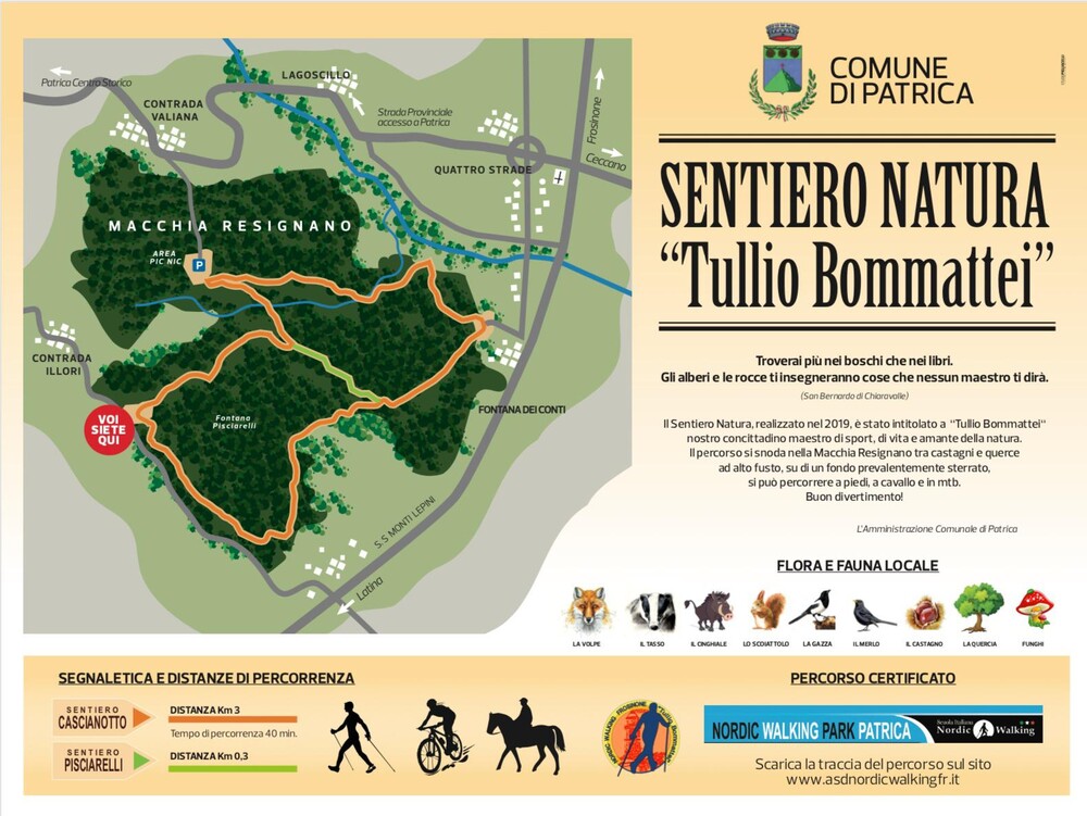 Il Sentiero Natura è un’area di circa 5 ettari inserito nella Macchia Resignano ed è divenuto ormai meta per famiglie, ciclisti, Associazioni.