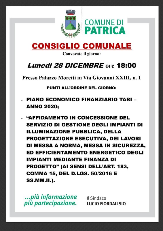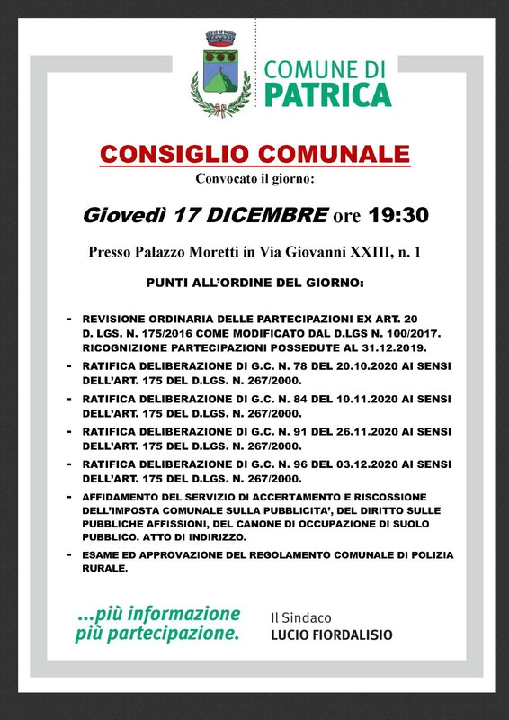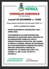 Nel mese di Dicembre si sono svolti due consigli comunali con i seguenti punti all'ordine del giorno: