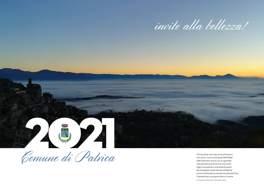 CALENDARIO ISTITUZIONALE 2021: ARRIVA NELLE CASE DI PATRICA.